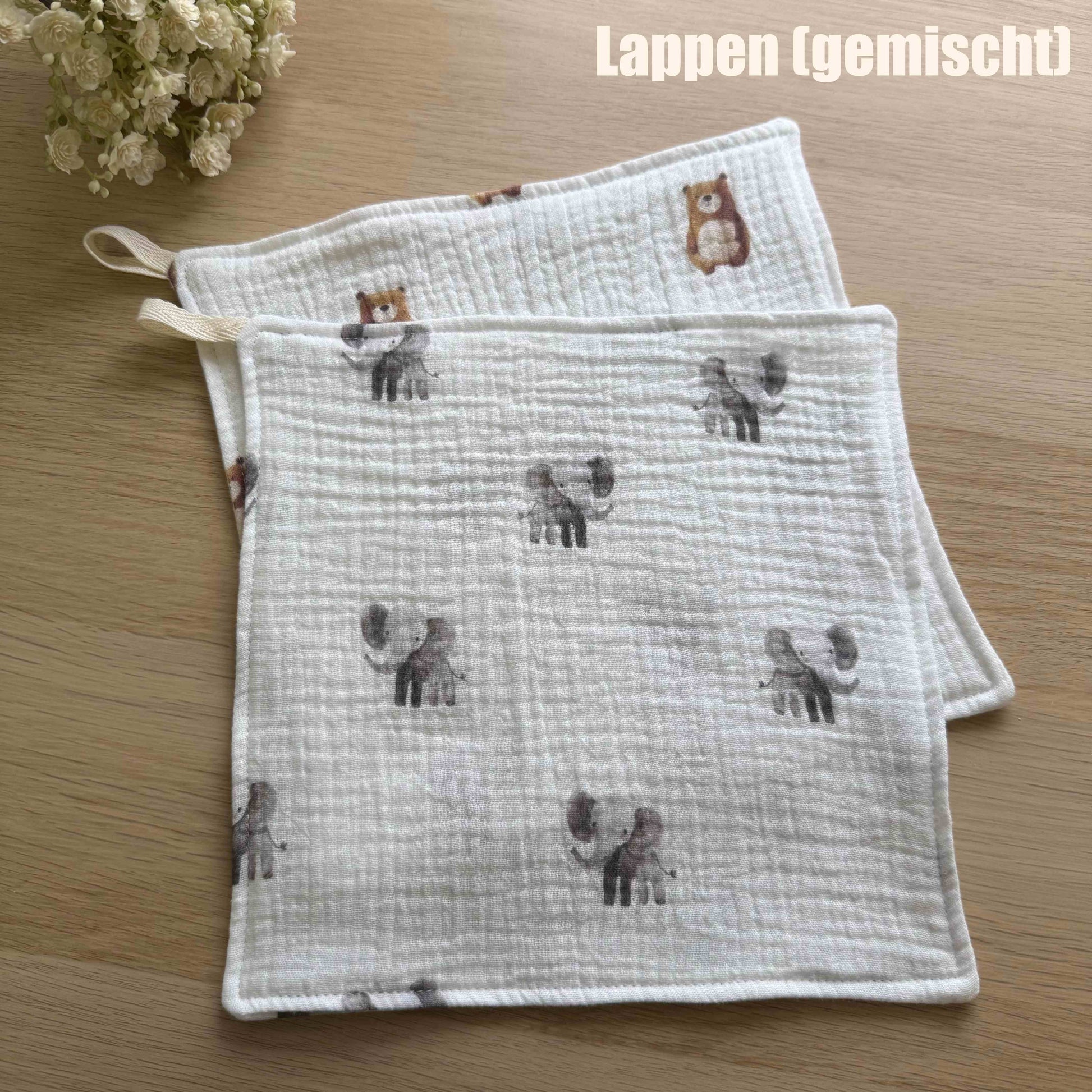 Musselin Waschlappen 2er Set "Elefant und Teddy"
