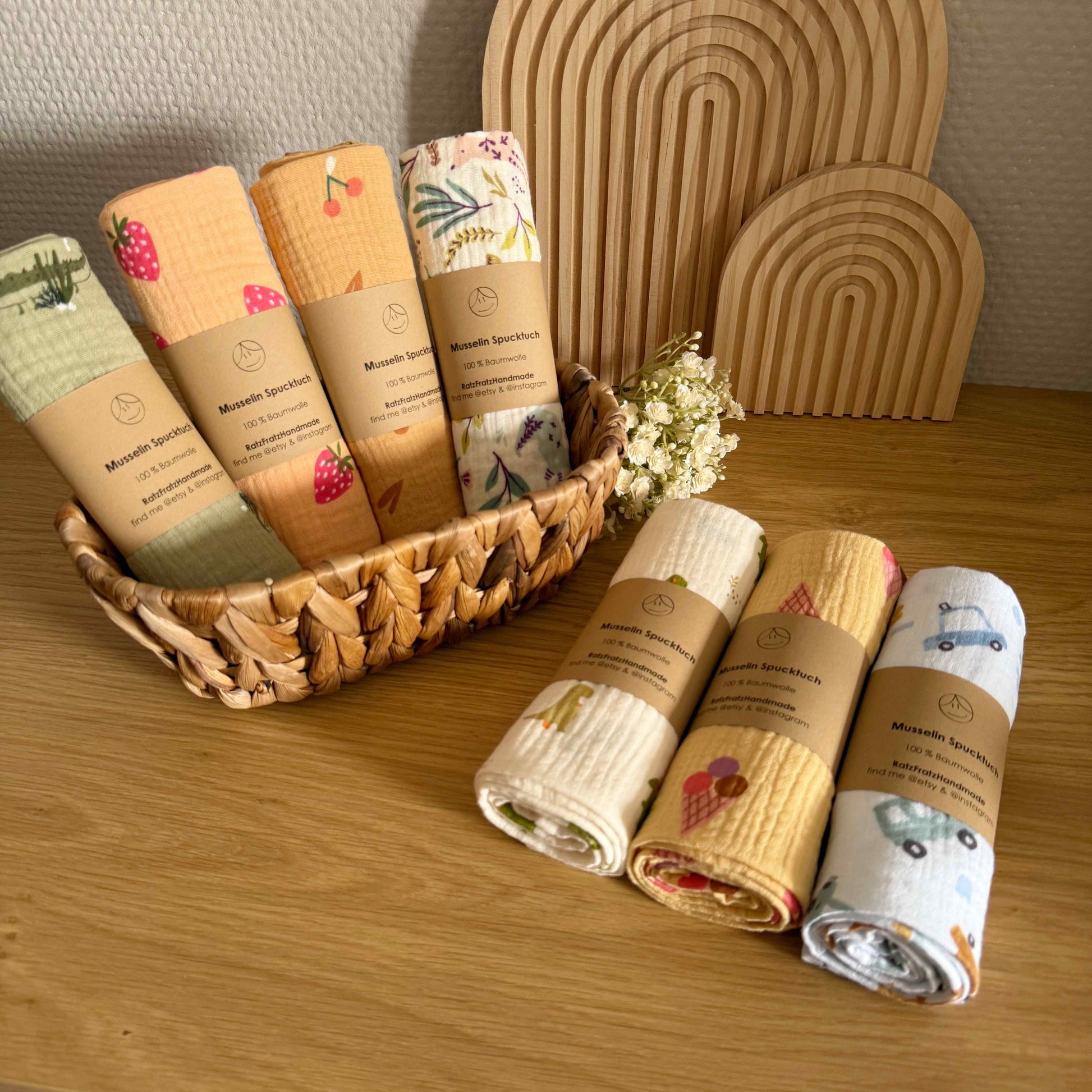 Perfekt zur Geburt, Babyparty oder als kleines Mitbringsel – unsere Spucktücher sind ein praktisches und stilvolles Geschenk für frischgebackene Eltern.